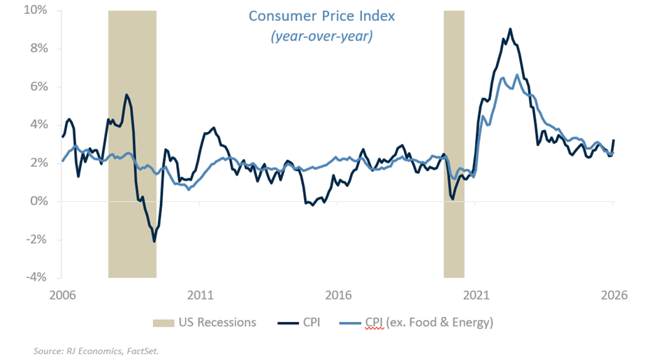The latest CPI report was encouraging from the Fed’s perspective. For now, it reinforces our view that policymakers can look through the recent increase in headline inflation, as core prices remained well contained in March despite higher oil and gasoline prices. Headline inflation rose to 3.3% from 2.4% in February, but the underlying trend in core inflation remains favorable. As a result, we are maintaining our call for just one rate cut in the federal funds rate by the end of this year.